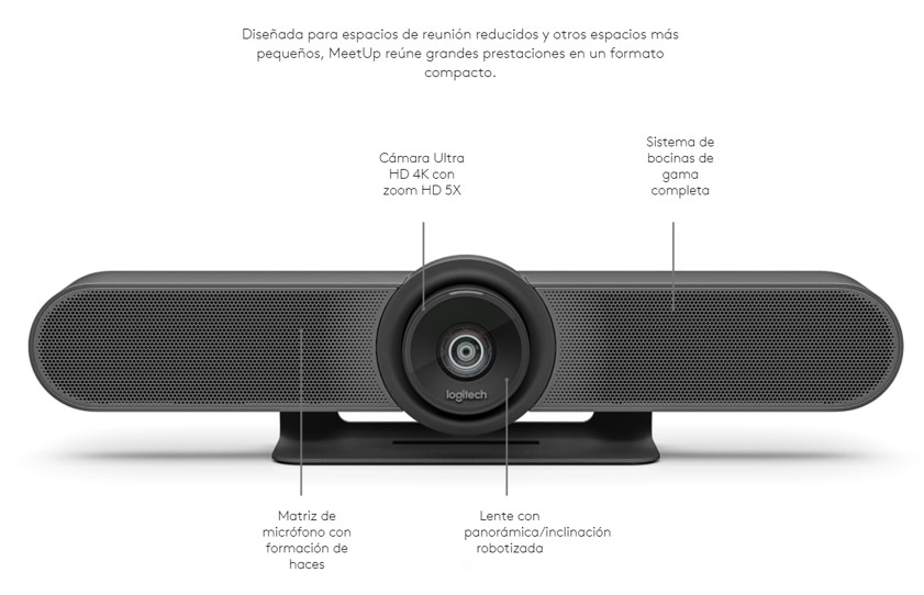 - Lente Logitech especial con zoom HD 5x y panorámica (+/- 25°) e inclinación (+/- 15°) robotizadas
